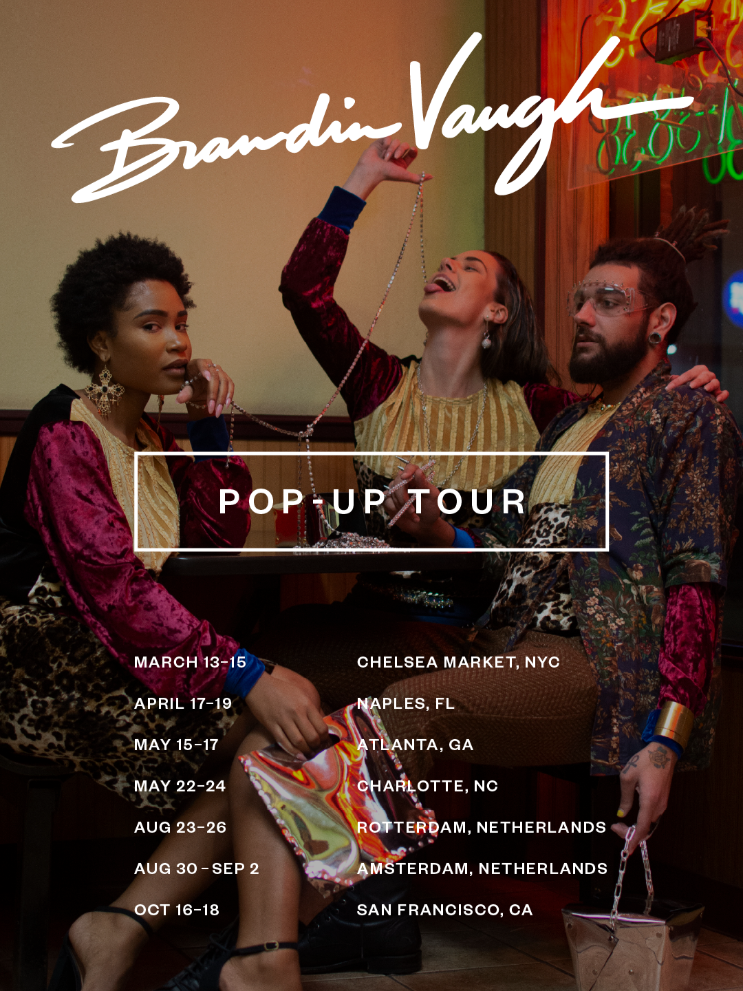 Join us at Chelsea Market as we kick off the Brandin Vaughn Pop-Up Tour. Discover the Brandin Vaughn Collection, shop the latest designs, and get to know the designer behind the work during this in-market experience.