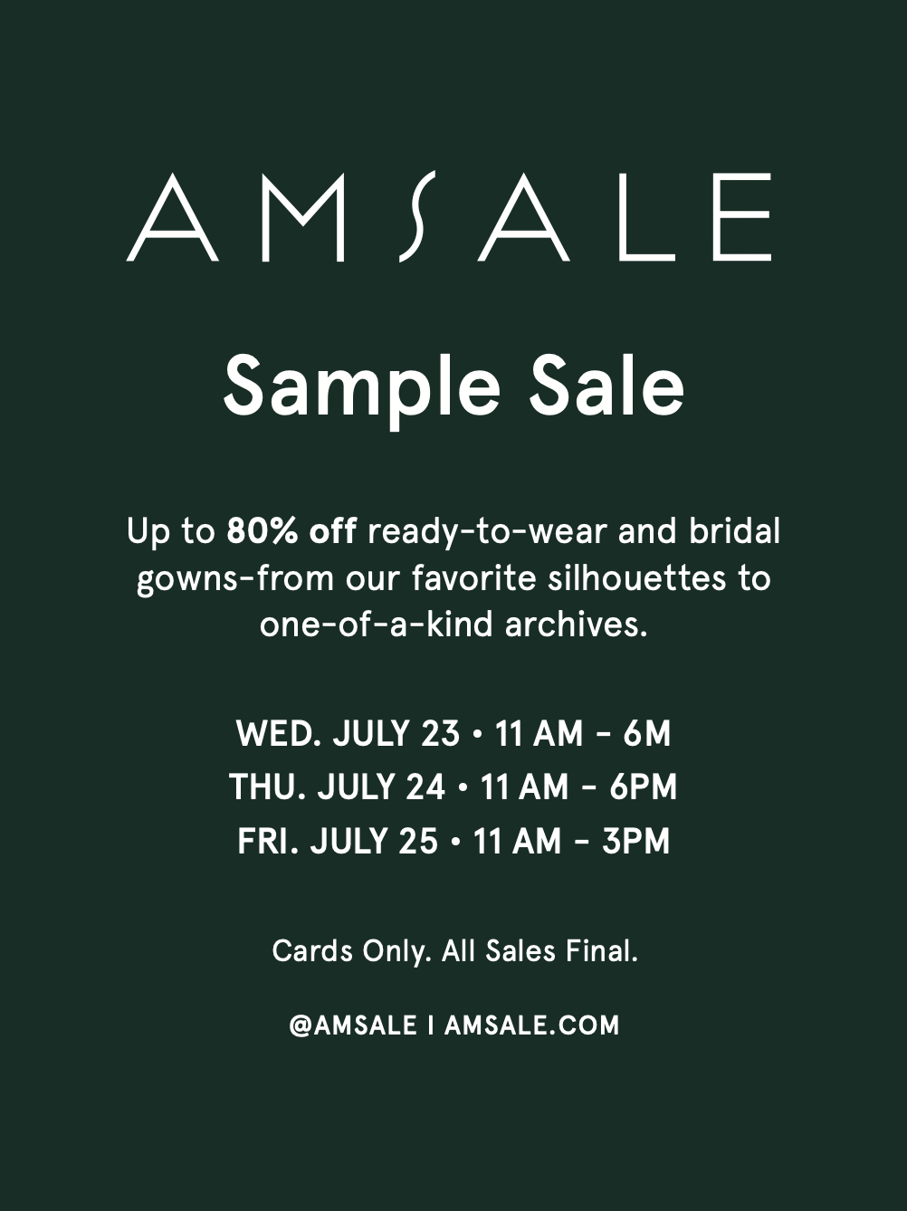 Join us at our NYC Sample Sale at Chelsea Market. Shop select ready-to-wear and bridal gowns up to 80% off — including signature silhouettes and one-of-a-kind archival pieces.